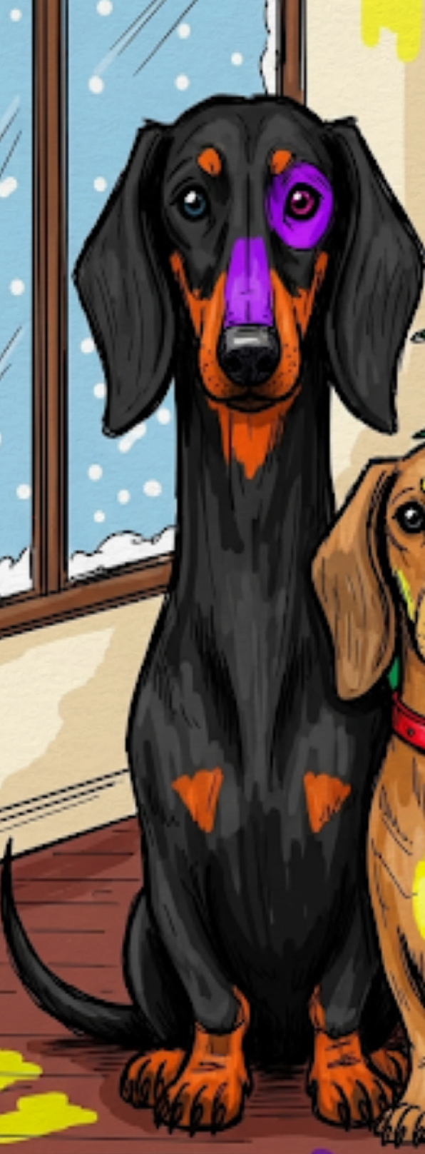 In a house filled with the scent of pine and cinnamon, lived two best friends. Blaky was a sleek dachshund with a curious nose,